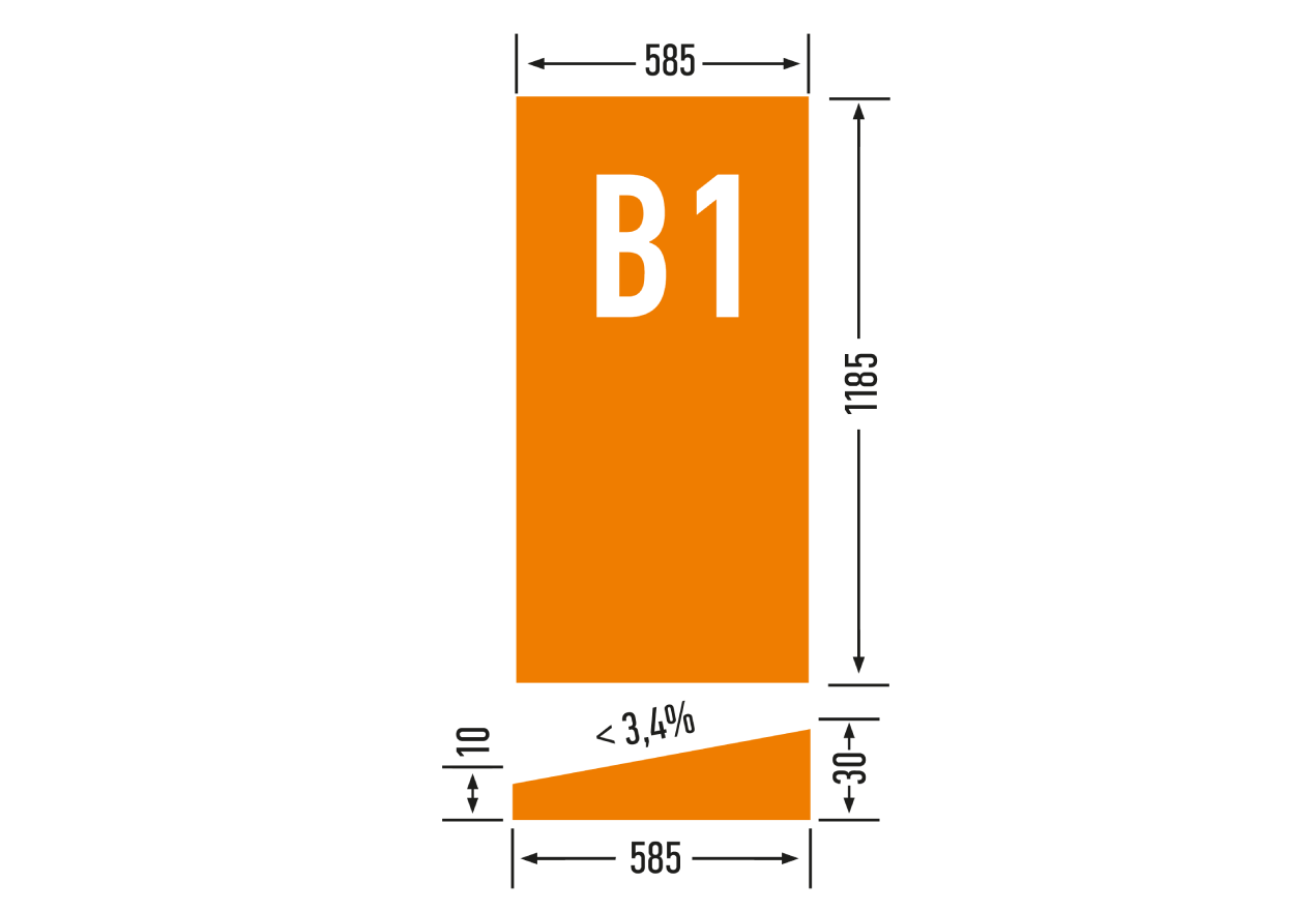 Placa B1 este destinată formării contrapantelor pe acoperișurile plane, în zona parapetelor și a altor elemente constructive proeminente. Aceasta se montează după realizarea pantei principale a acoperișului din plăcile A1 și A2, destinate formării pantei de bază.